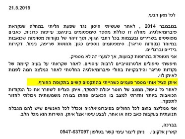 הטיפול בשיטת אית”ן: שיטת אית”ן – איזון תנועתי פונקציונלי פותחה ע”י ד”ר איתן לוי PhD כמשלב של טיפול משלים. במקרה זה הטיפול יכלול עיסוי רפואי מותאם אישית, ניטרול נקודות טריגר וטיפול חיצוני אנטי דלקתי משולב. לשמחתנו יעילות הטיפול רבה, כפי שניתן לראות בעדויות המטופלות. במקרים רבים הבעייה נפתרת במספר טיפולים מועט, בפרט כאשר הכאבים ממקור מיופציאלי בלבד.